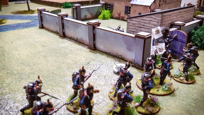 Zu guter Letzt versuchte die französische Linieninfanterie einen Sturm auf das zentrale Bauwerk zu inszenieren. Doch ward ihnen kein Glück beschienen, und so ward der Triumph in diesem Scharmützel von den Preußen errungen, welche zuvor geschickt (betrachtet im Nachhinein - in der Hitze des Gefechts eher aus Zufall oder Eingebung) ihre Kommandopunkte in eine vernehmbare Menge Siegpunkte konvertiert hatten.