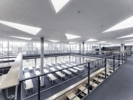 Der fünfgeschossige "Galeriesaal" ist der Lesebereich der Bibliothek. Er besteht aus vier umlaufenden, kontinuierlich sich nach oben verjüngenden, durch freistehende Treppen verbundene Emporen. Das lichte Grau der einheitlich gefärbten Wände, Böden und Treppen ermöglicht ein einzigartiges Raumerlebnis von fast spiritueller Leichtigkeit. In auffallendem Kontrast - farbig und "fleischlich" - hierzu stehen die in den Regalen aufgereihten Rücken der Bücher... Und natürlich die Menschen, von denen nicht wenige der Bibliothek einzig zur Besichtigung dieser außergewöhnlichen Architektur einen Besuch abstatten - ob durch die eigenen Augen oder durch das Objektiv einer Kamera schauend.